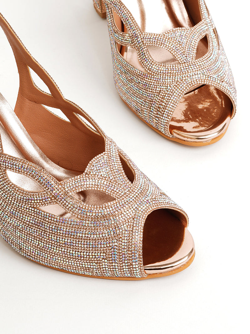 Elevate your party look with the Sparkle Heels. Featuring a bold 4-inch block heel and shimmering fancy stone embellishments, these chic slip-ons blend style with comfort for dazzling evenings.