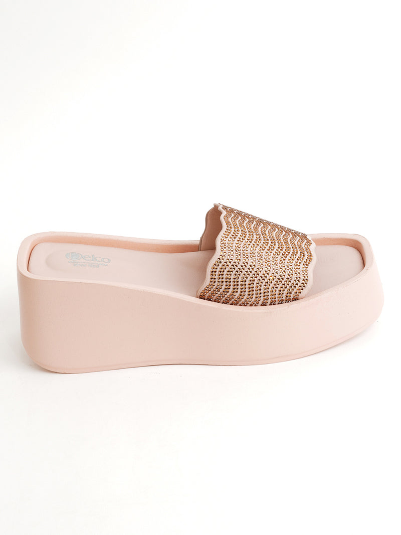 Step into sophistication with the Radiant Rise Platforms. Featuring a sleek 3-inch platform, shimmering fancy stones, and a sturdy PU sole, these elegant slip-ons are perfect for adding sparkle to your evening ensemble.