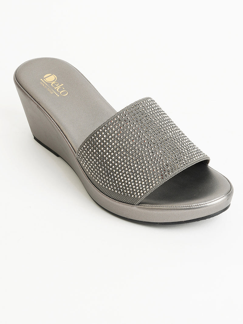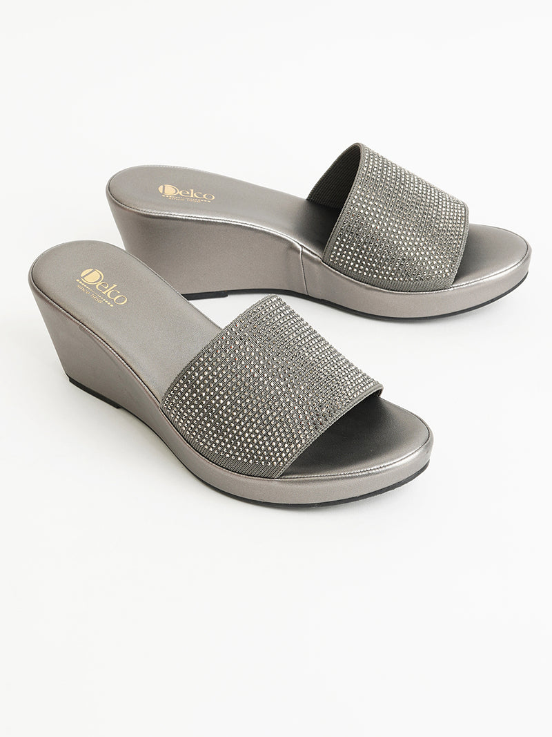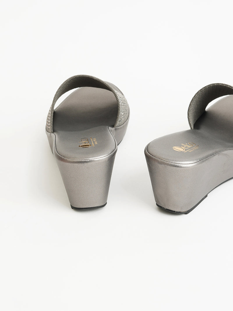 Elevate your party look with the Starry Glow Platforms. Designed with a bold 3-inch platform and adorned with dazzling fancy stones, these slip-ons offer the perfect blend of glamour and comfort. Ideal for making a sparkling statement at any event.