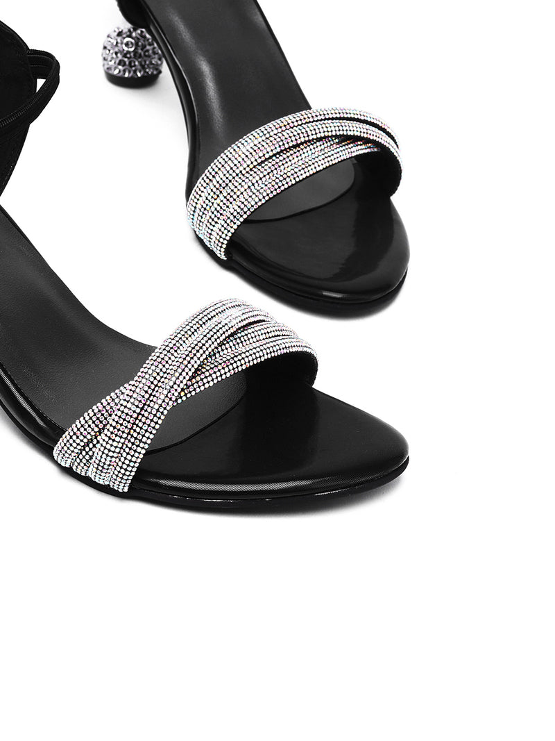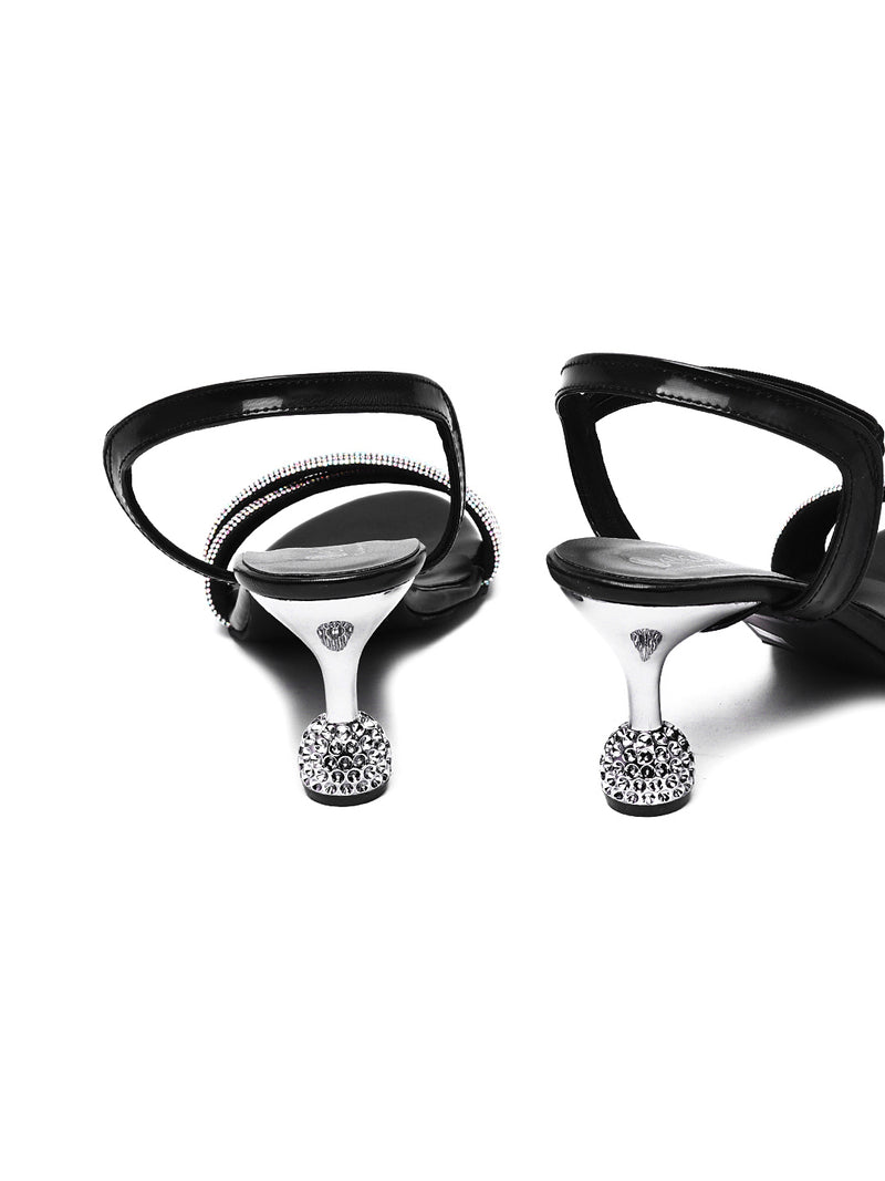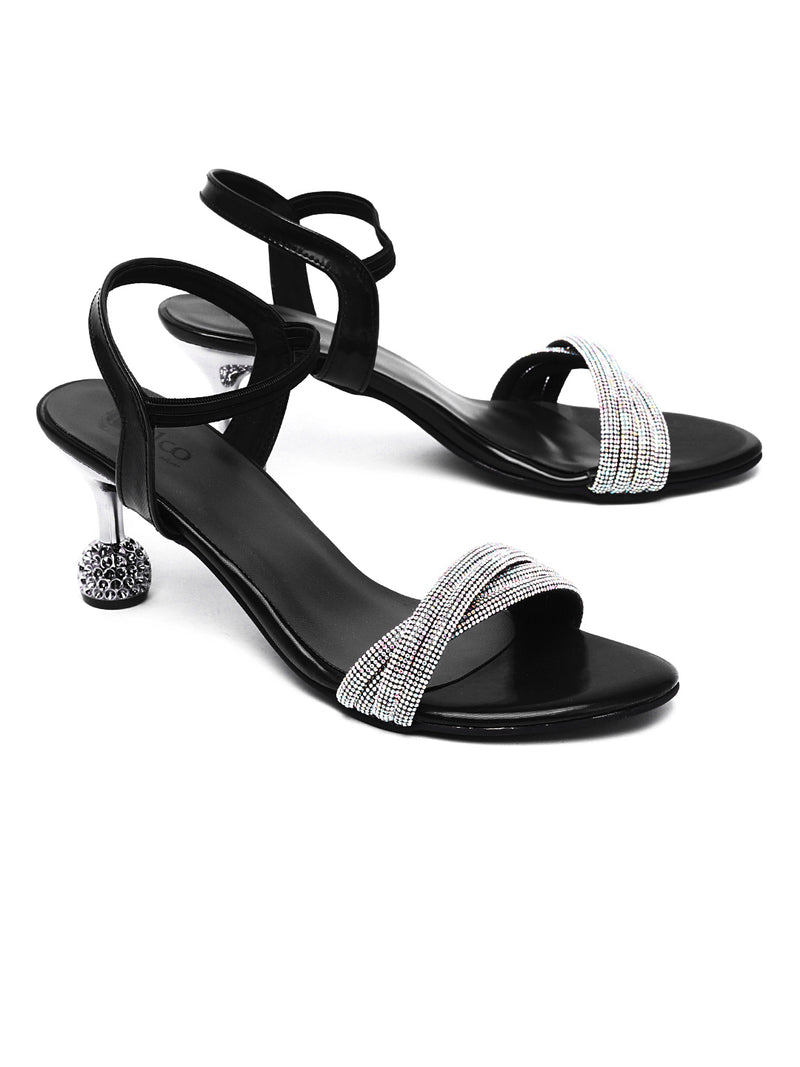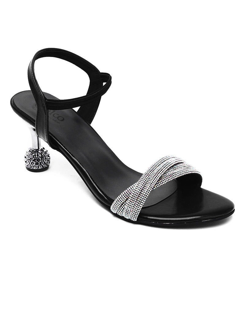 Step into the spotlight with Delco's Black F-Medium Kitten Heel Sandal, designed for those special occasions. Adorned with synthetic fancy stones, these sandals elevate your party look effortlessly. Featuring a comfortable 3-inch kitten heel and a synthetic rubber sole, they ensure both style and stability for a night of dancing. Make a statement at your next event with Delco's Starry Night Sandals, the perfect blend of glamour and comfort.
